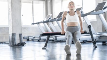 Exercice de renforcement musculaire ciblé, il permet de retrouver des bras toniques ! Pour réaliser des dips, on se met en appui sur un step ou un banc de musculation, paume des mains derrière soi tandis que le poids du corps repose sur les bras. Les doigts pointent vers l’avant. L’exercice consiste alors à monter et à descendre en activant les triceps.