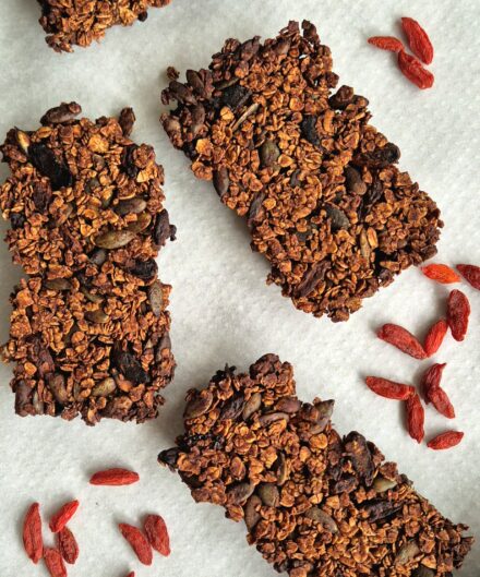 Barres énergétiques cacao/ baies de goji/graines de courge par Amandine Blachon